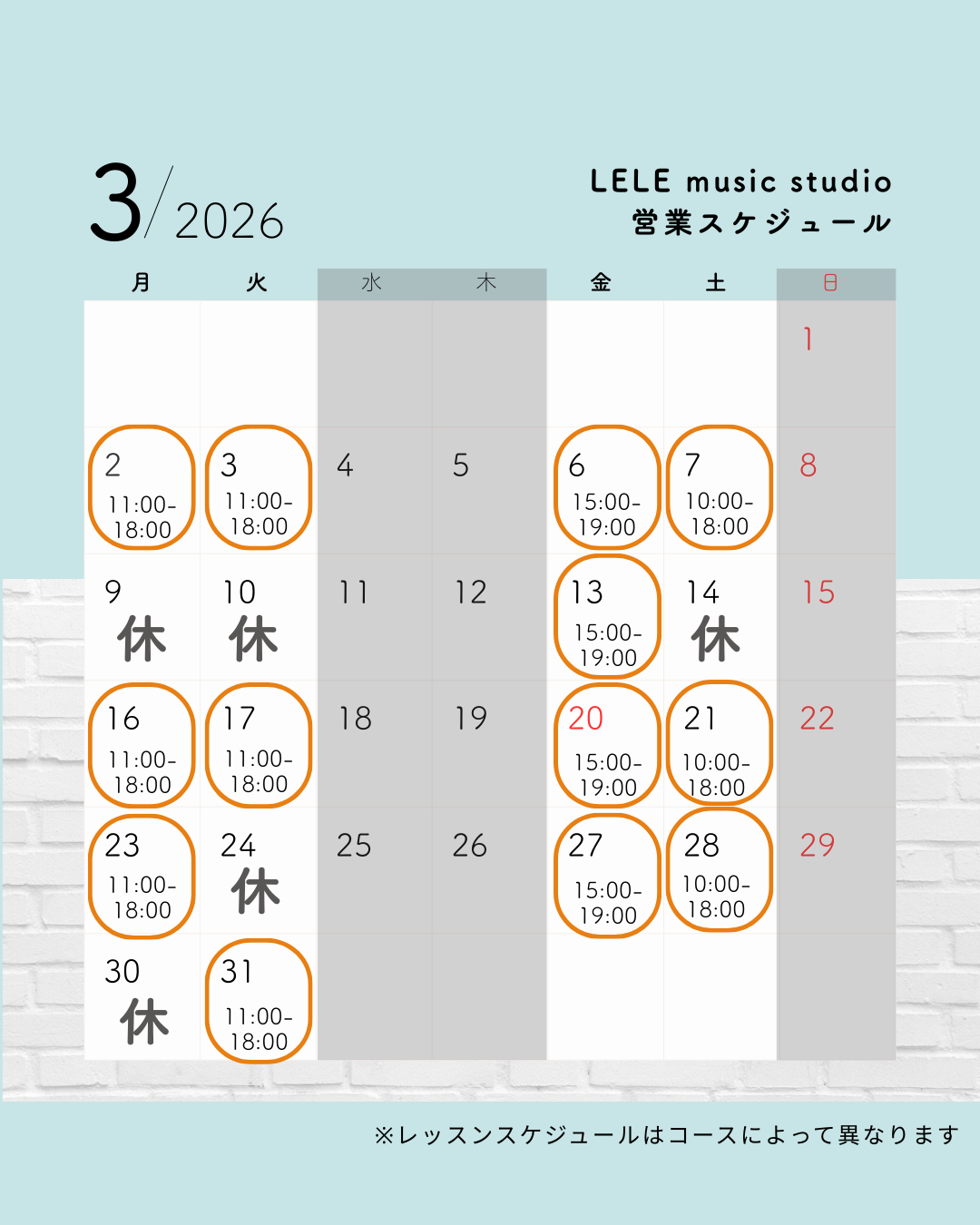 <レッスン曜日:土曜> |